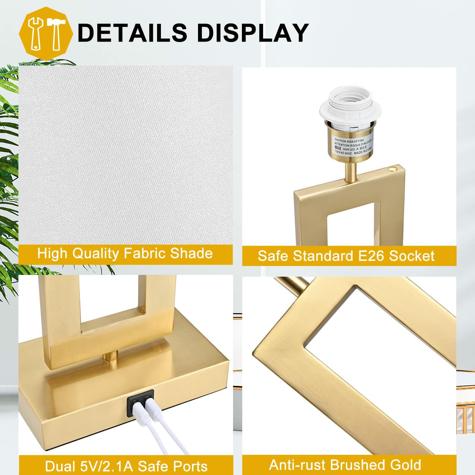 - 💛Built-in Dual USB Ports- These usb table lamp set of 2 each comes with dual 5V/2.1A USB ports. Help you charge 2 electronic devices simultaneously including smart phone, earphone, tablet, e-book, humidifier, game switch and so on. No need to have sockets and cords chaos on your table, keep the surroundings neat and tidy. The charging function is available even lamps are off, so you can easily charge your phone in night with bedside nightstand lamps!