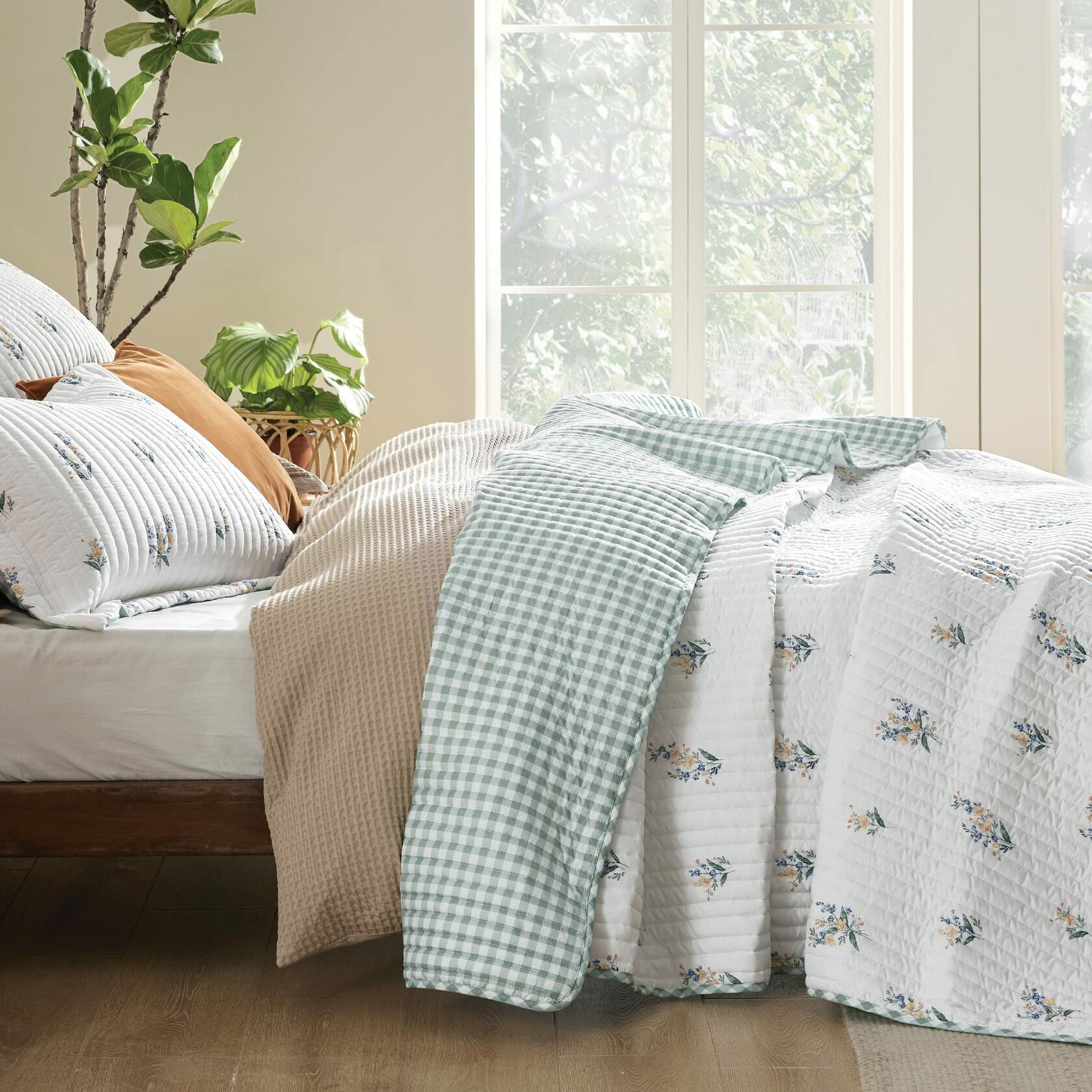 Softness That Lasts: This quilt set features an advanced quilting craftsmanship on brushed microfiber for superior softness, and gets even softer after washes. Its anti-static and breathable fabric provides maximum comfort without any crinkly noise.All Season Use: This farmhouse quilt set is suitable for year-round use. The heavier-than-average microfiber filling covered in the 85 GSM brushed polyester shell gives this quilt the right amount of weight. This warm yet lightweight quilt set is suitable for hot summer eves and delivers essential supplementary warmth during cold winter days.Elevated Classic Texture: This floral quilt set adds personality to your sleep haven with colorful styles and vivid patterns, energizing you for the day ahead and helping you unwind with recharging nights of sleep.Versatile and Practical: This quilt set is versatilely practical for various use cases, including as a thin summer quilt, as an extra lightweight bedspread in the winter, as a bed coverlet for pet, or as a simple and elegant bedding decoration element.Enhanced Durability: This premium quality quilt set is machine washable, featuring neat stitching construction that ensures a stronger connection at the seams and prevents the filling from shifting. The unique dyeing technique brings out the colors and prevents them from fading.What You Can Get: This Standard 100 by OEKO-TEX certified Bedsure queen quilt bedding set comes with 1 quilt (90" x 96") and 2 pillow shams (20" x 26" + 2").