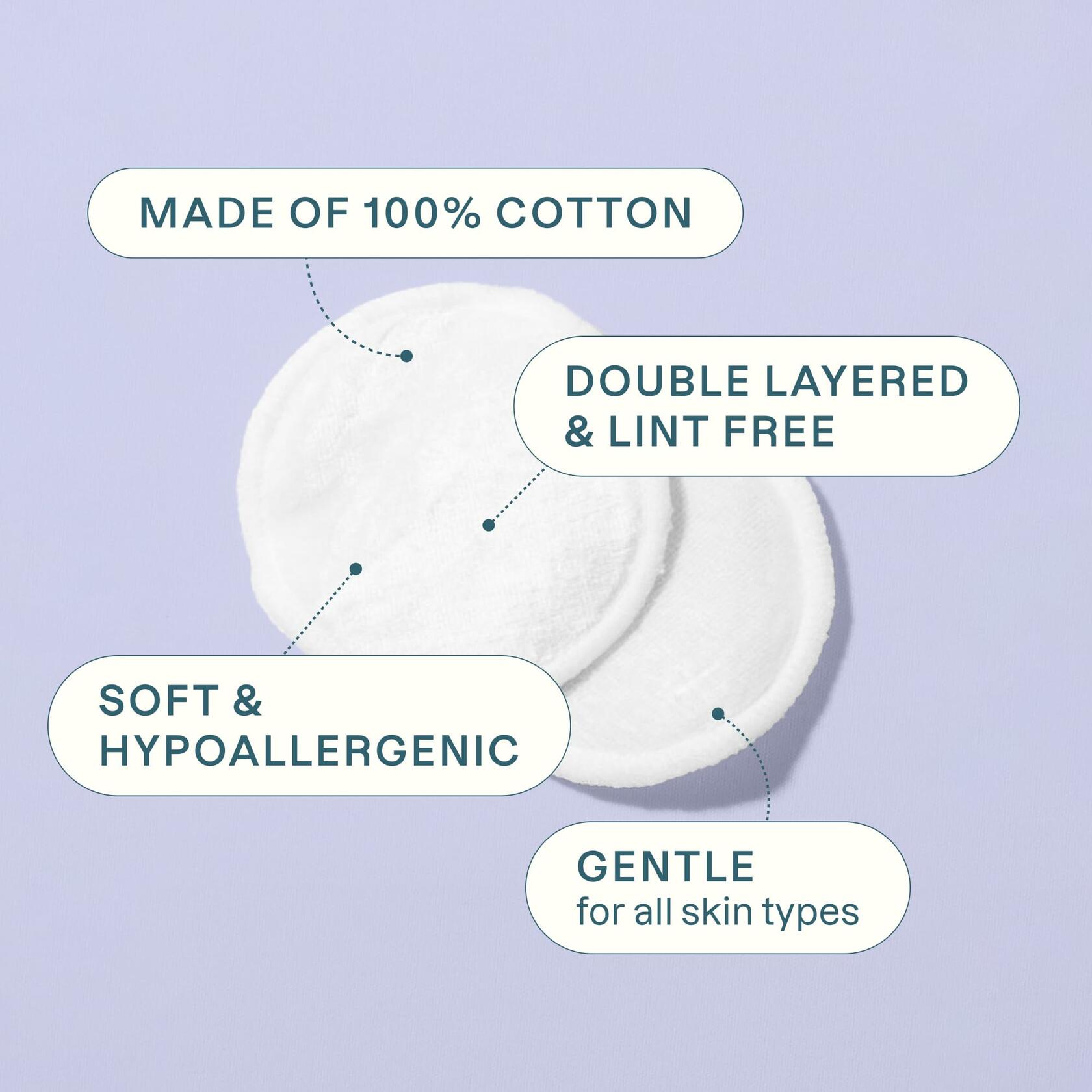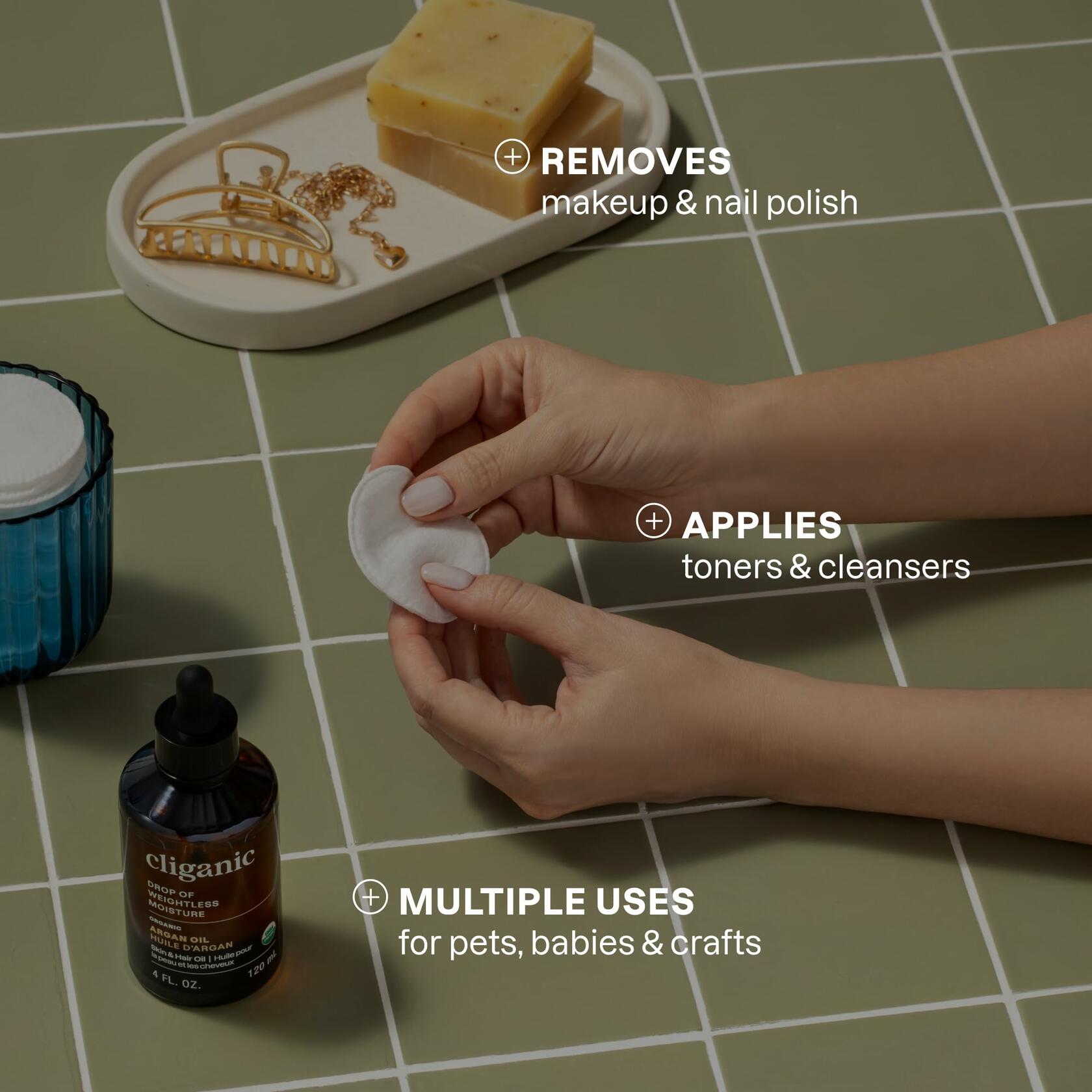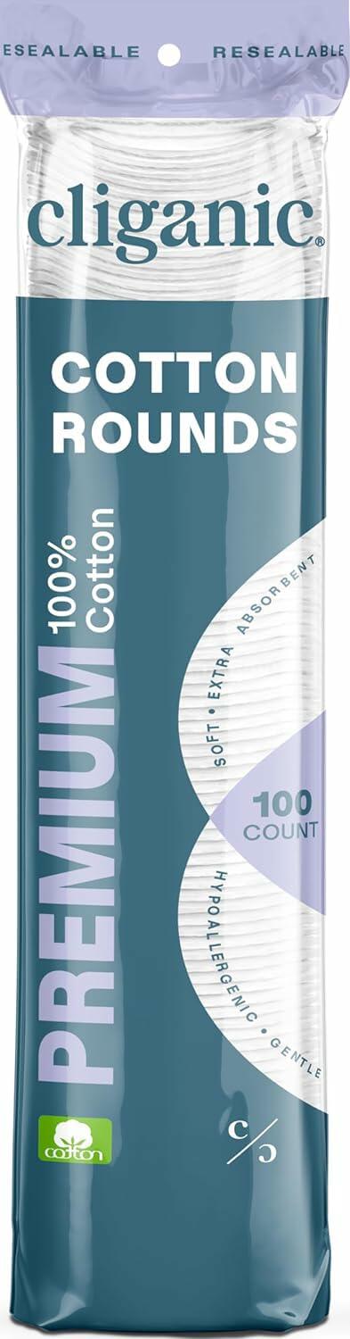 Cliganic Premium Cotton Rounds for Face (100 Count) | Makeup Remover Pads, Hypoallergenic, Lint-Free | 100% Pure Cotton