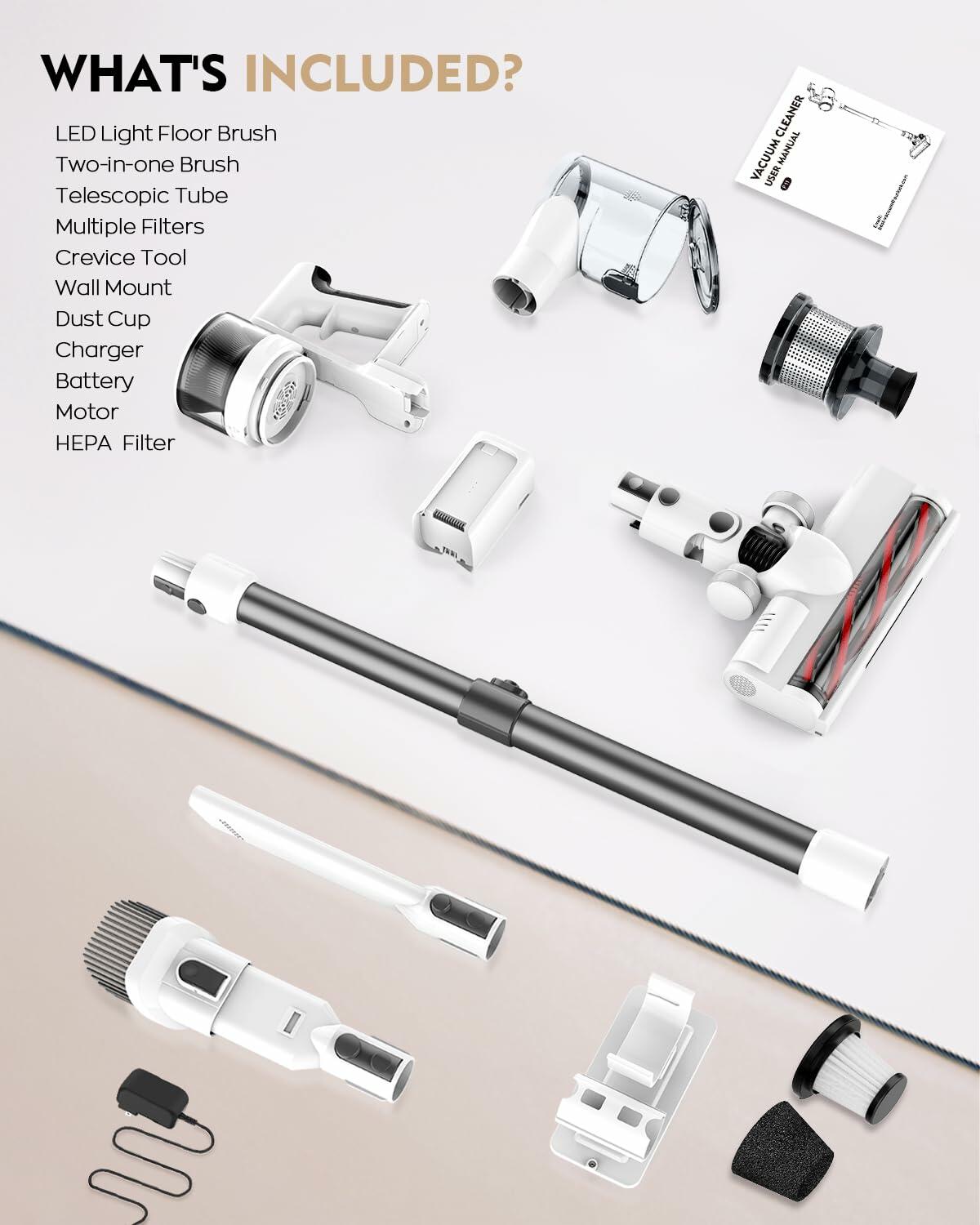 - Lightweight And Portable, Rotated Brush Heads: 🧹 Cordless vacuum for home makes you easier to clean, and the lightweight cordless vacuum can be operated with one hand, easily picking up hair, dust and small particles. The LED Brush Heads can 180° side-to-side and 90° up-and-down rotate, letting you clean your home in all directions.