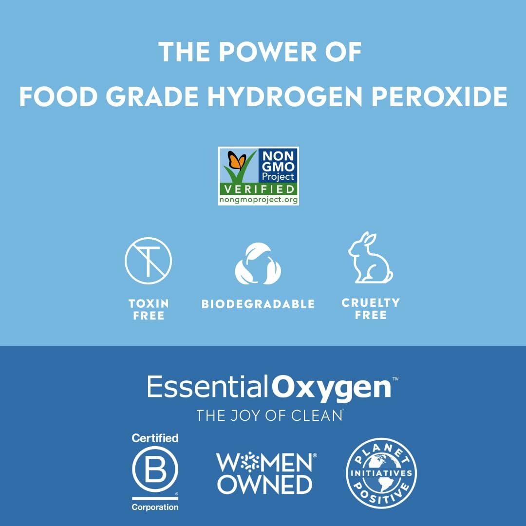 Essential Oxygen Food Grade Hydrogen Peroxide, Natural Cleaner, 3% USP, White, 16 Ounce