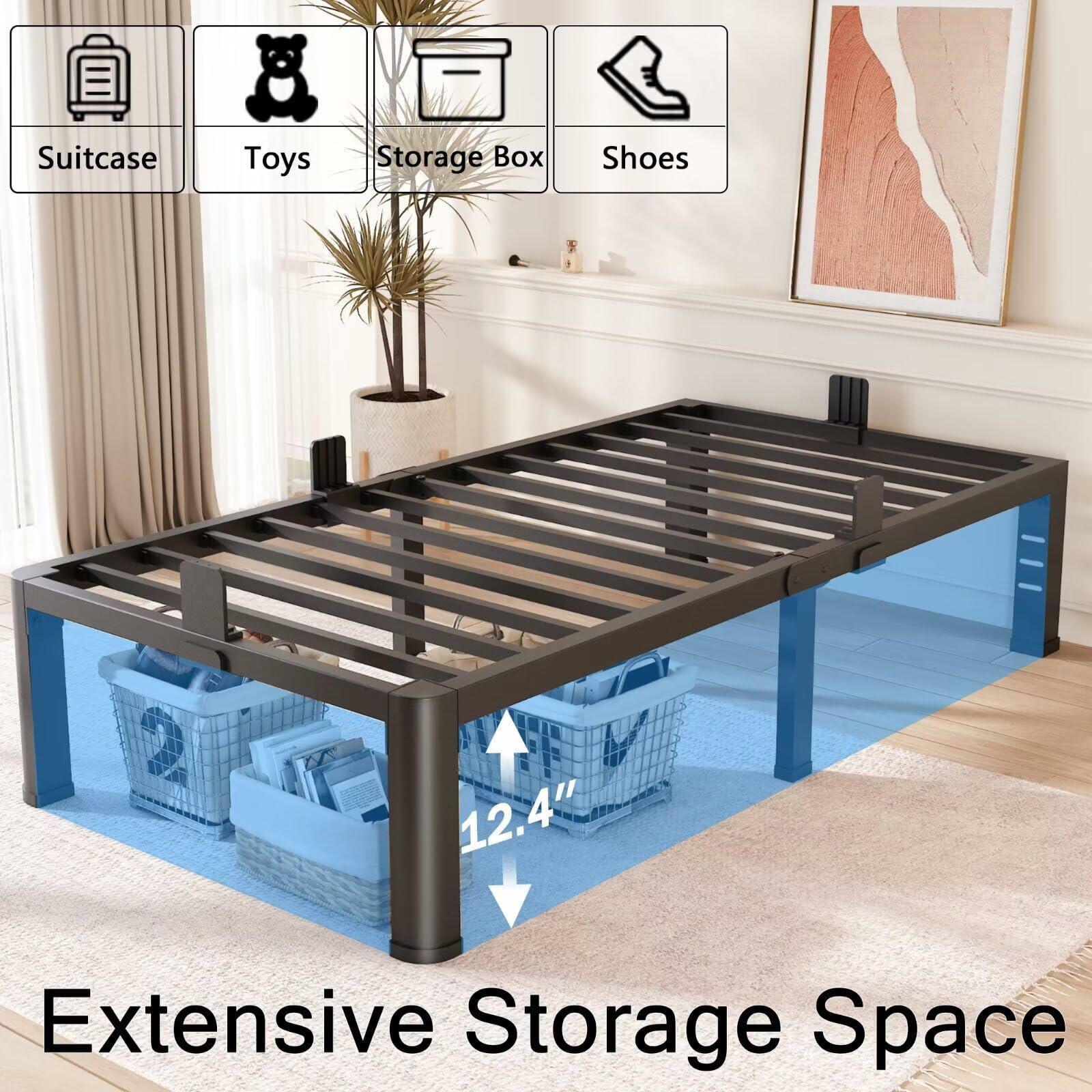 - REASONABLE STORAGE SPACE: The 14 inch bed frame has 12.4 inches of under-bed storage space for boxes, clothes, toys, quilts and more, keeping the room neat and organized and reducing clutter.