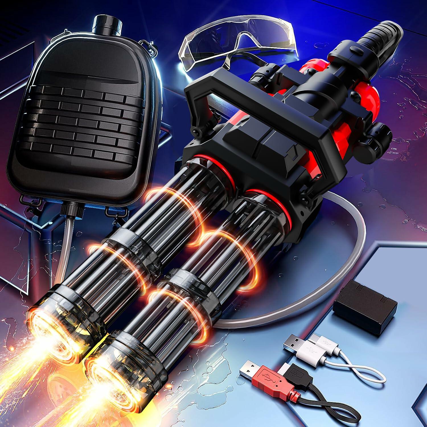 Gatling Electric Water Gun for Adults & Kids, Dual-Barrel, Up to 49FT Most Powerful Automatic Squirt Gun with LED Water-Sensor, Large Water Tank & Battery, Outdoor Toy, Summer Toys for Parties