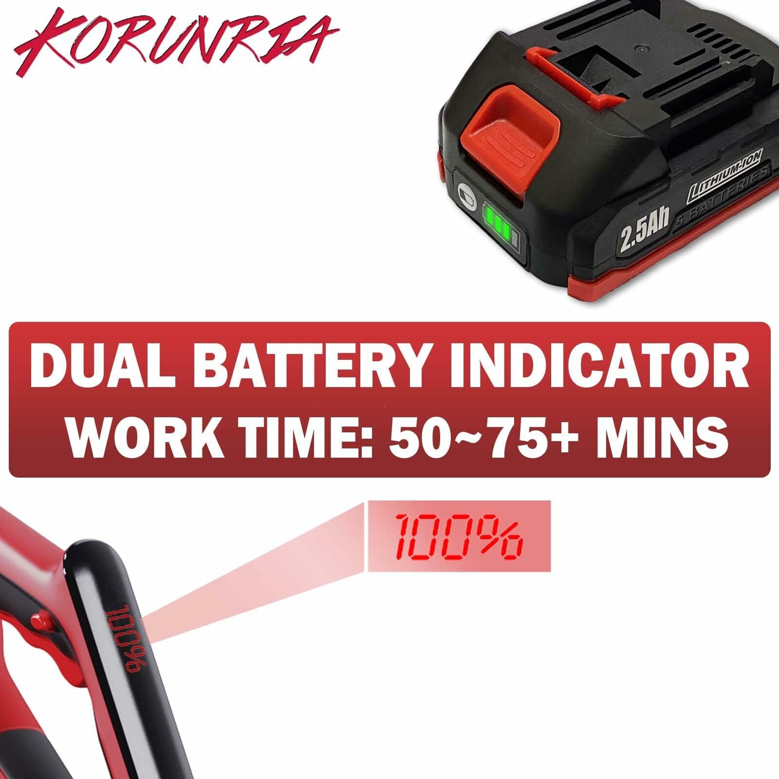 - š[Powerful Battery Life] Each 2.5Ah battery can provide 50-75 minutes of operating time.