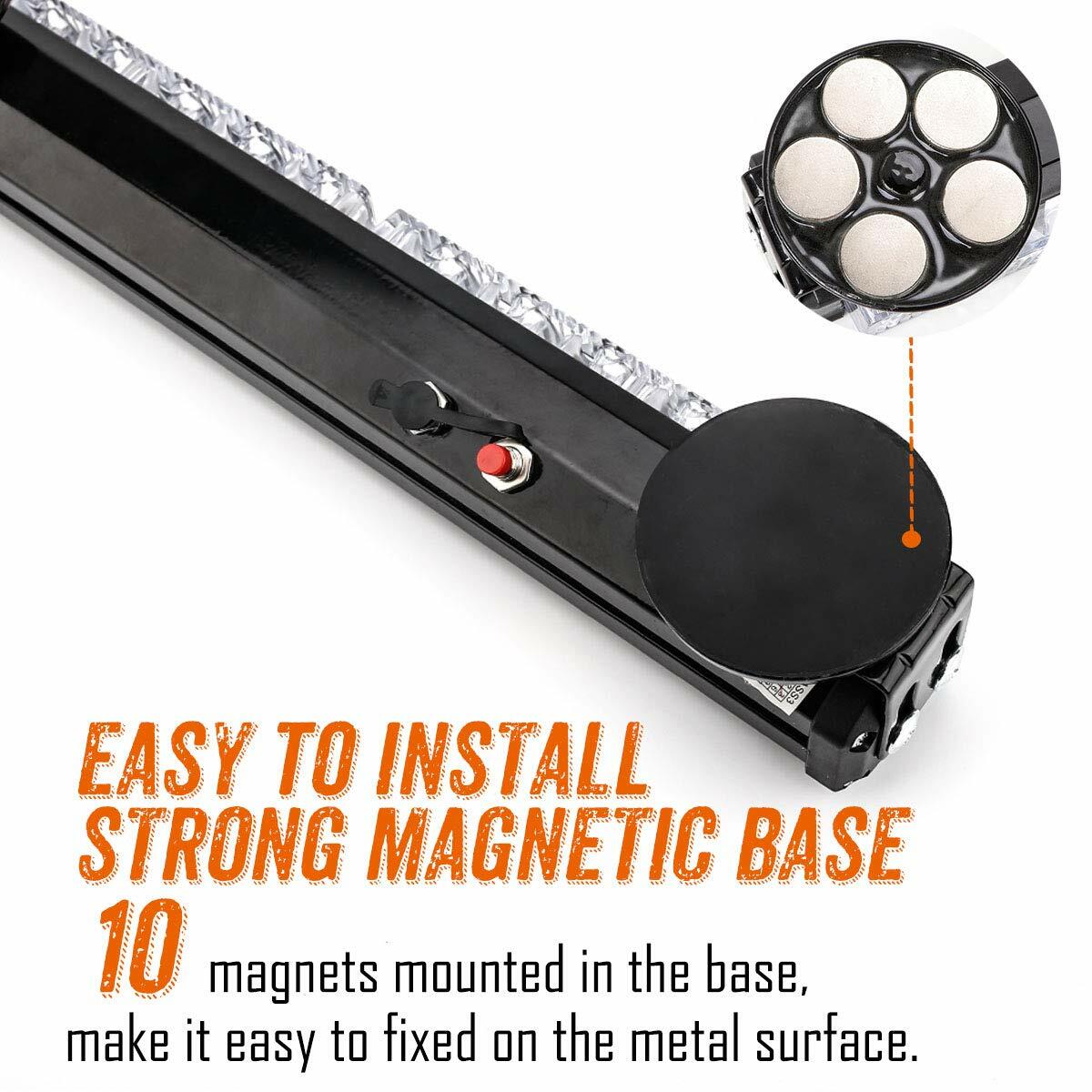 - 24 High Intensity Leds - Brighter and more effective than standard Led Strobe Lights, it is even visible during the daytime conditions.10 magnets mounted in the base,make it easy to fixed on the metal surface.