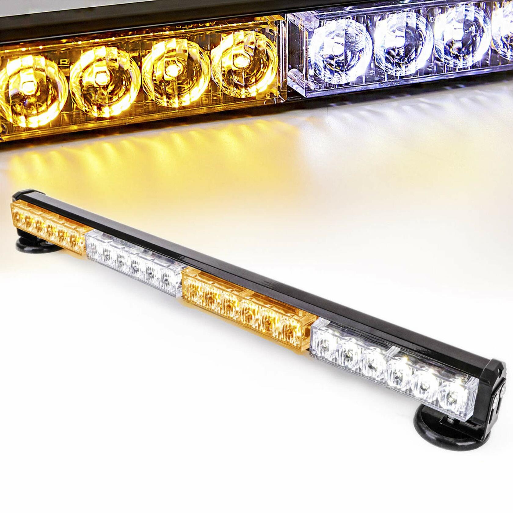 LE-JX 24” Amber/White Wireless Traffic Advisor Emergency Lights Bar Battery Led Strobe Warning Light Roof Top Hazard Flash with Magnetic Base Mount and 12V Rechargeable Plug (24 LEDs)