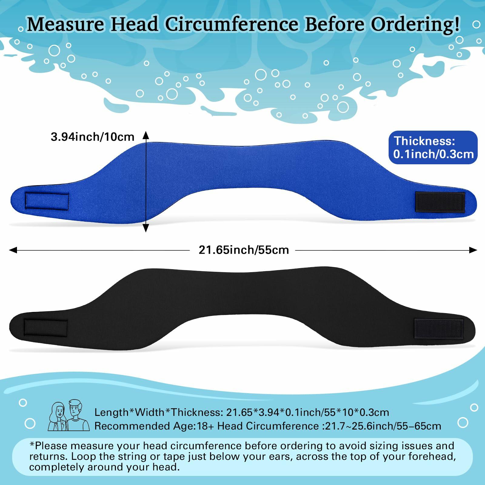 - Fit for Adults: our Swimming Headband is available in one sizes to adults; The large size is (22.833.940.1inch inches) fits adults aged 16 and above with head circumferences of 21.7-26 inches; Before ordering, please measure your head circumference to avoid size issues and the hassle of returns; It's better to use a soft tape measure, but a piece of string and a standard tape measure can also work
