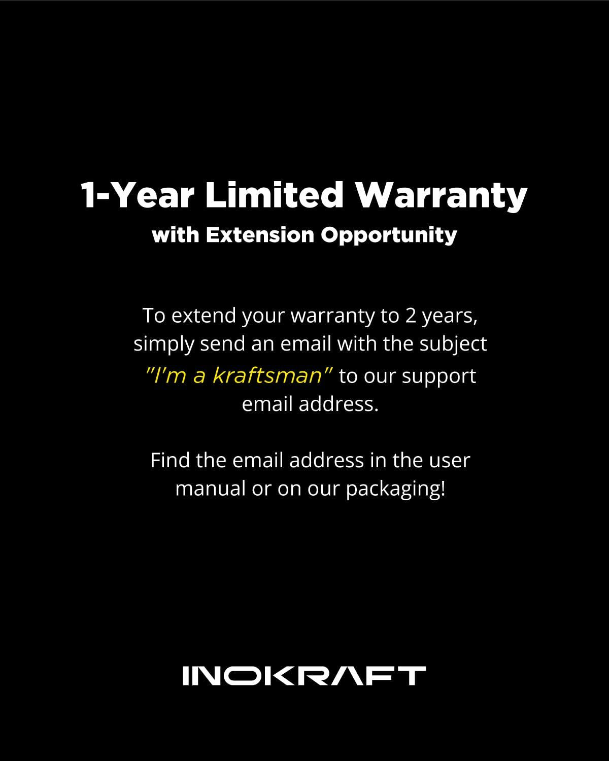 - Warm and Expert Customer Care - Experience hassle-free usage with us. If any issues arise, don't hesitate to reach out. We're committed to finding solutions quickly, saving you from the stress of returns or exchanges. Enjoy a 1-year warranty extendable to 2 years with an email titled "I'm a kraftsman". Our support email is in the manual and packaging.