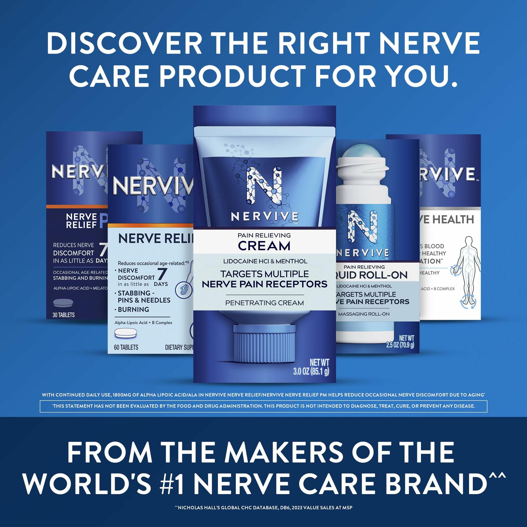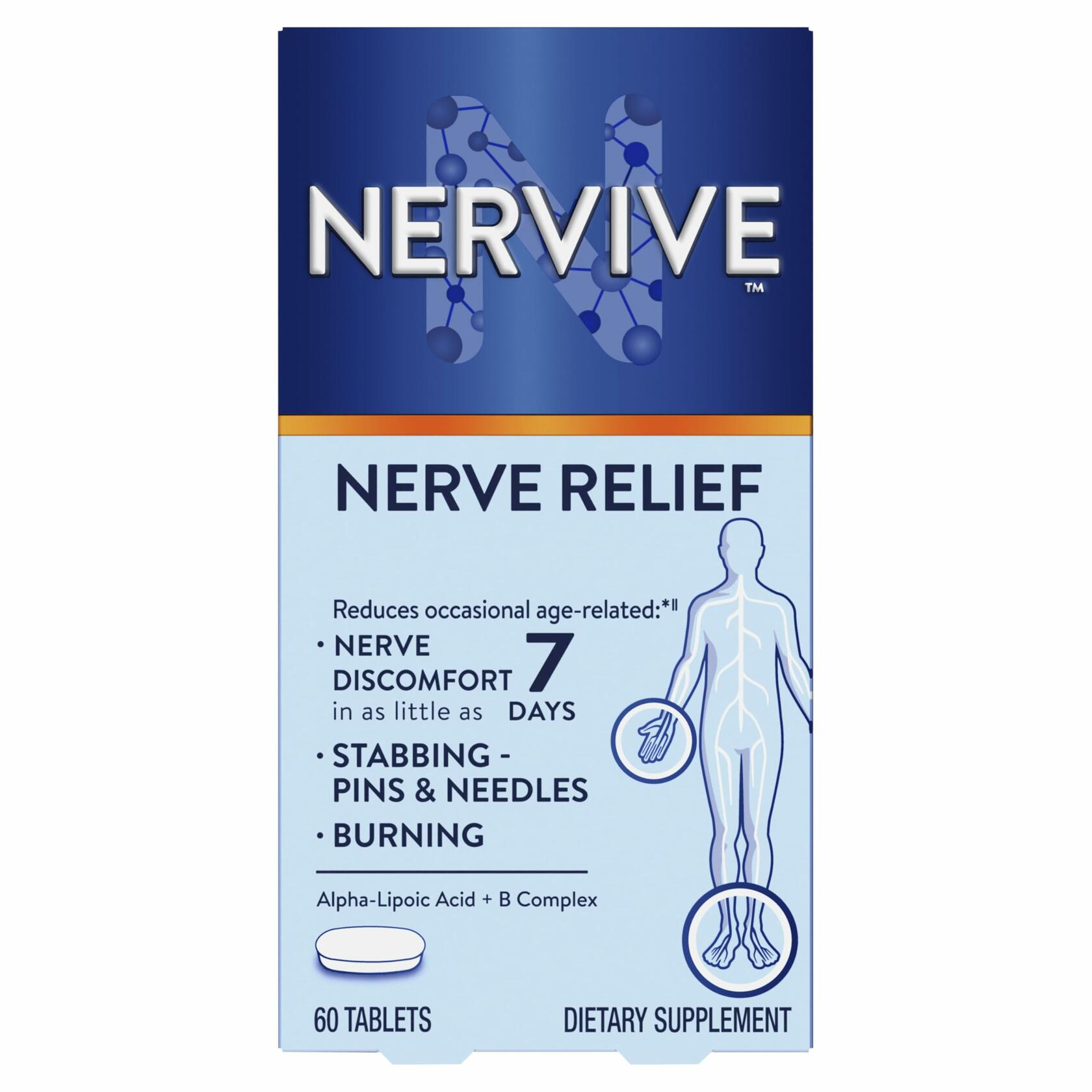 Nervive Nerve Relief, Reduces Occasional Nerve Discomfort in as Little as 7 Days, Stabbing/Pins and Needles, Burning in Hands and Feet*†, Alpha Lipoic Acid, B Vitamins, Turmeric, Ginger, 60 Tablets