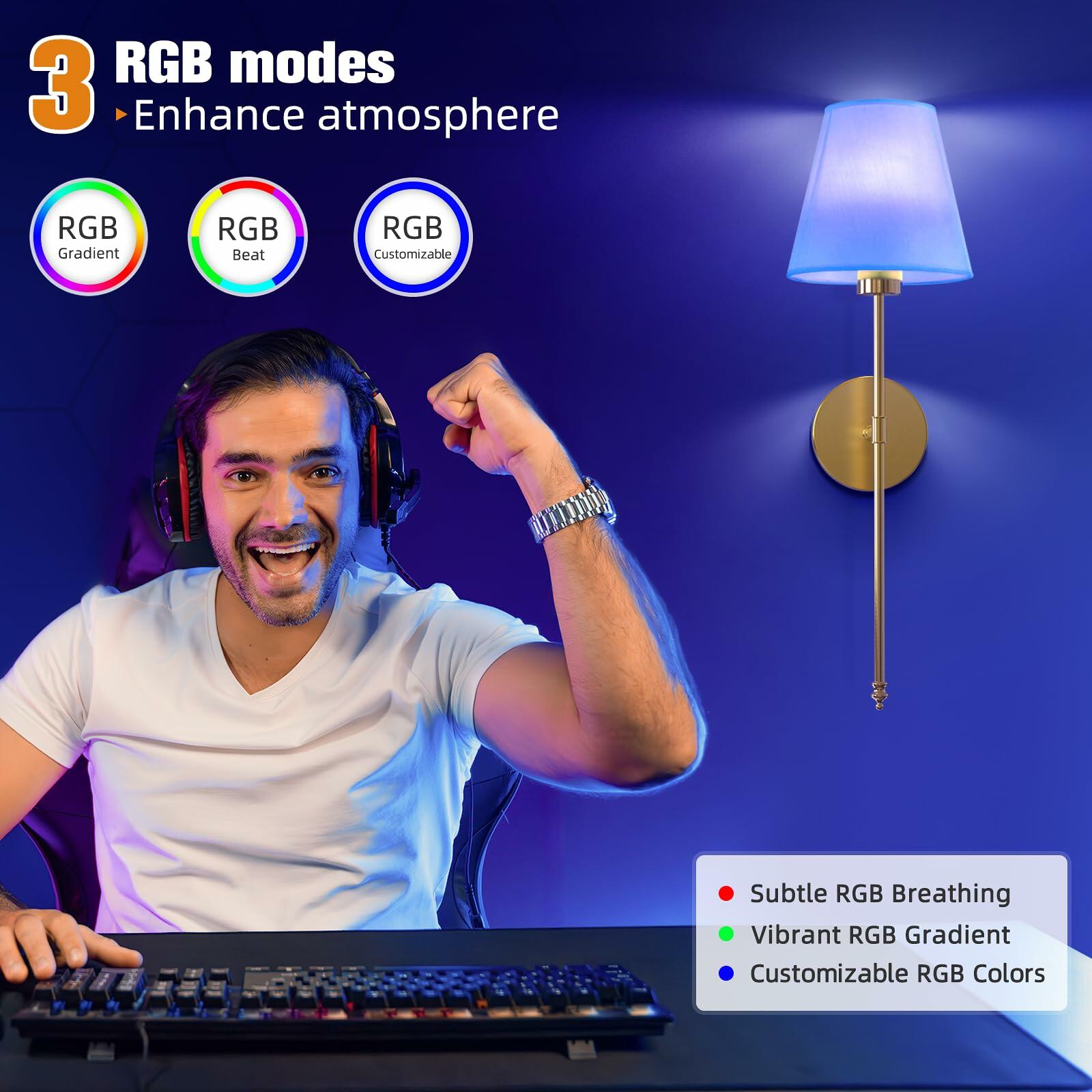 - 【Dimmable & Color Customized】Customize your lighting experience with adjustable color temperatures ranging from 3000K to 6500K and five levels of brightness (20%-100%),as well as 10 RGB colors.Whether you need warm, cozy lighting or bright, energizing illumination, our sconces wall decor set of 2 offer a comprehensive range of lighting options.