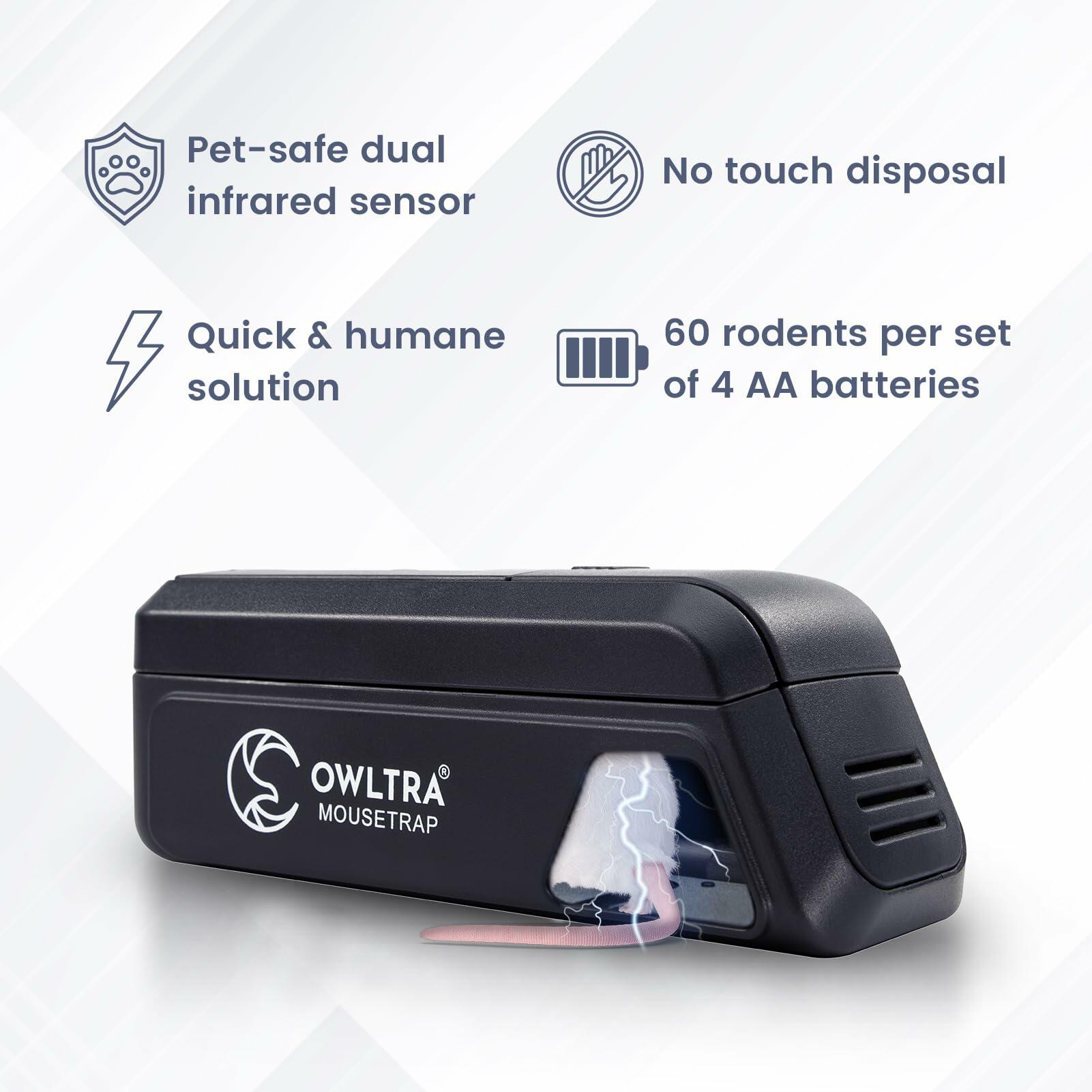 OWLTRA OW-2 Indoor Electric Mouse Trap 2 PCS, Instant Kill Rodent Zapper with Pet Safe Trigger, Black
