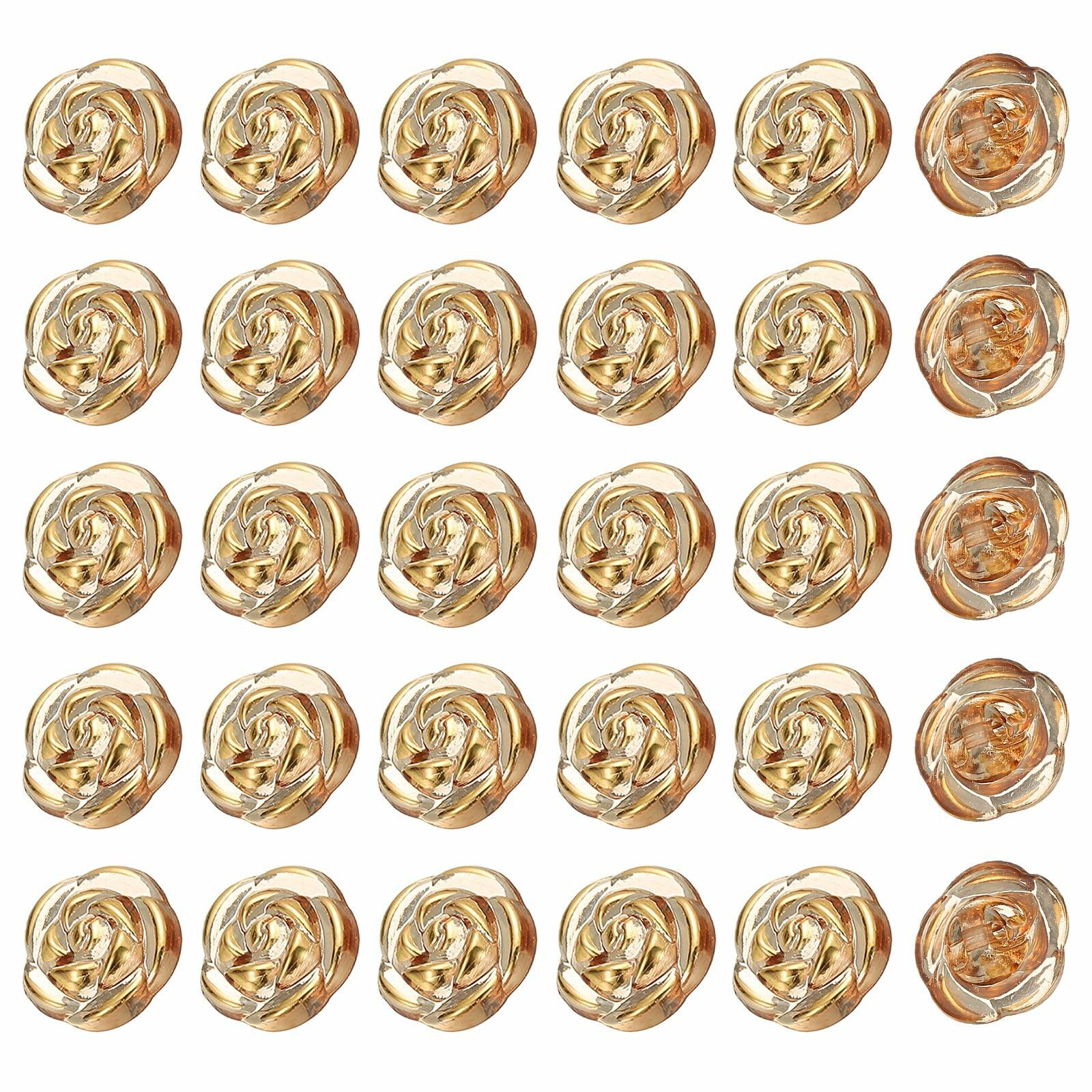PATIKIL 30Pcs Rose Flower Buttons, 13mm 1/2" Acrylic Cute Buttons for Clothes Decorative Sewing Accessories for DIY Crafts Shirts Blouse Sweaters, Coffee/Gold