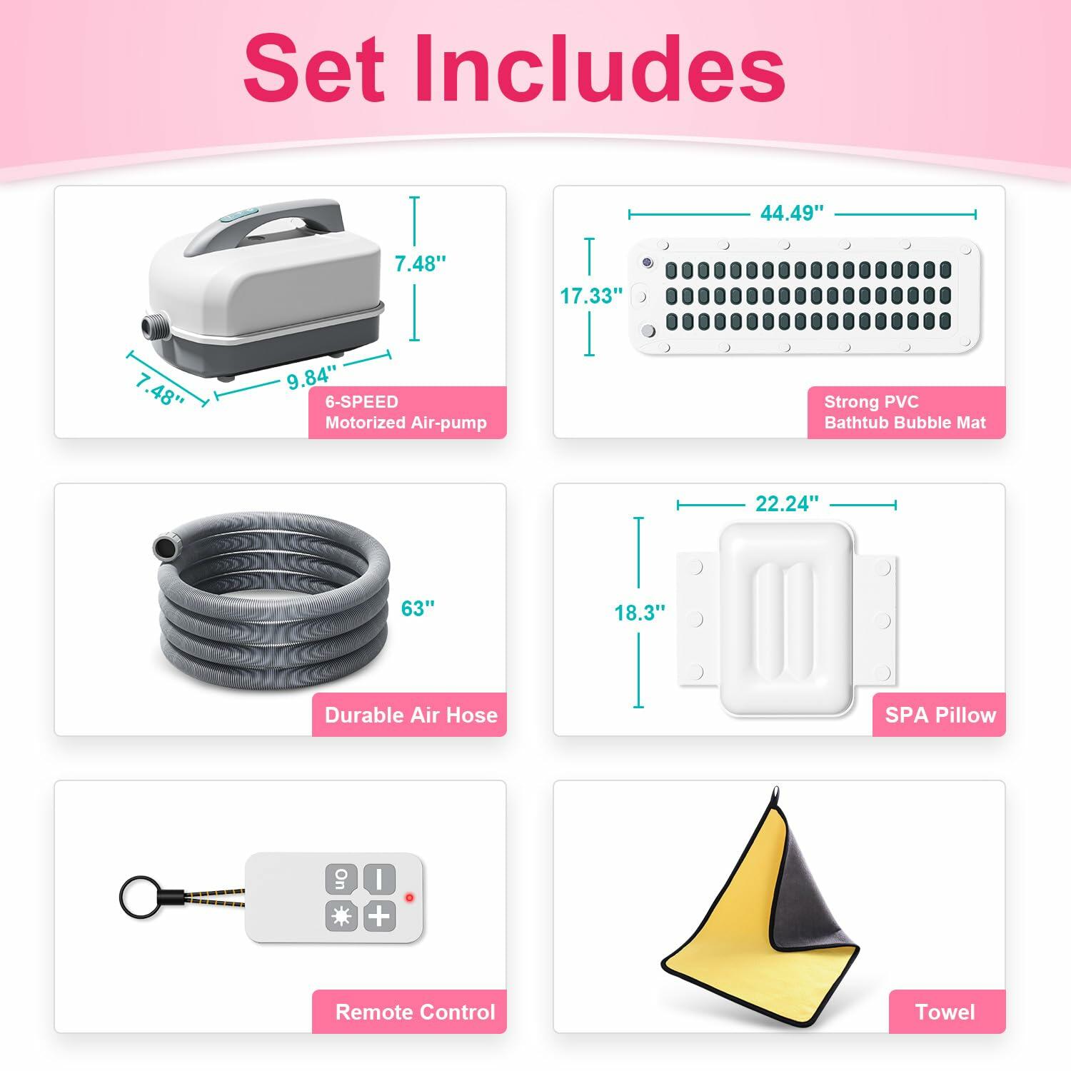 - Transform Your Bath into a Spa-Like Retreat-Bring the bliss of a high-end spa to your home with this bubble machine for bath tub. The powerful hydrotherapy jets create millions of gentle, soothing bubbles, enveloping your body in a cocoon of relaxation. Perfect for relieving muscle tension and stress after a long day, this portable jet spa for bathtub is your ticket to everyday luxury.