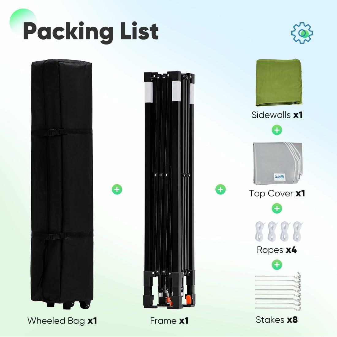 - [ One Person Set up ]: This 10’x10’ canopy tent with sidewalls adopts a center-lock structure, which can be easily and quickly set up and torn down by one person in one minute.