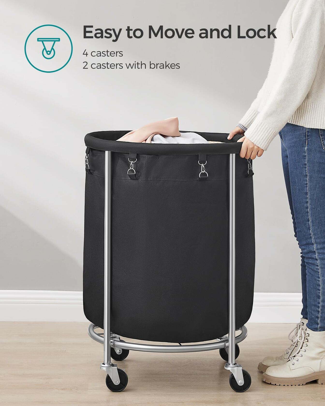 - Easy to Move & Lock: 4 casters, 2 of which have brakes, allow you to easily move this laundry hamper to the laundry room and lock it in place