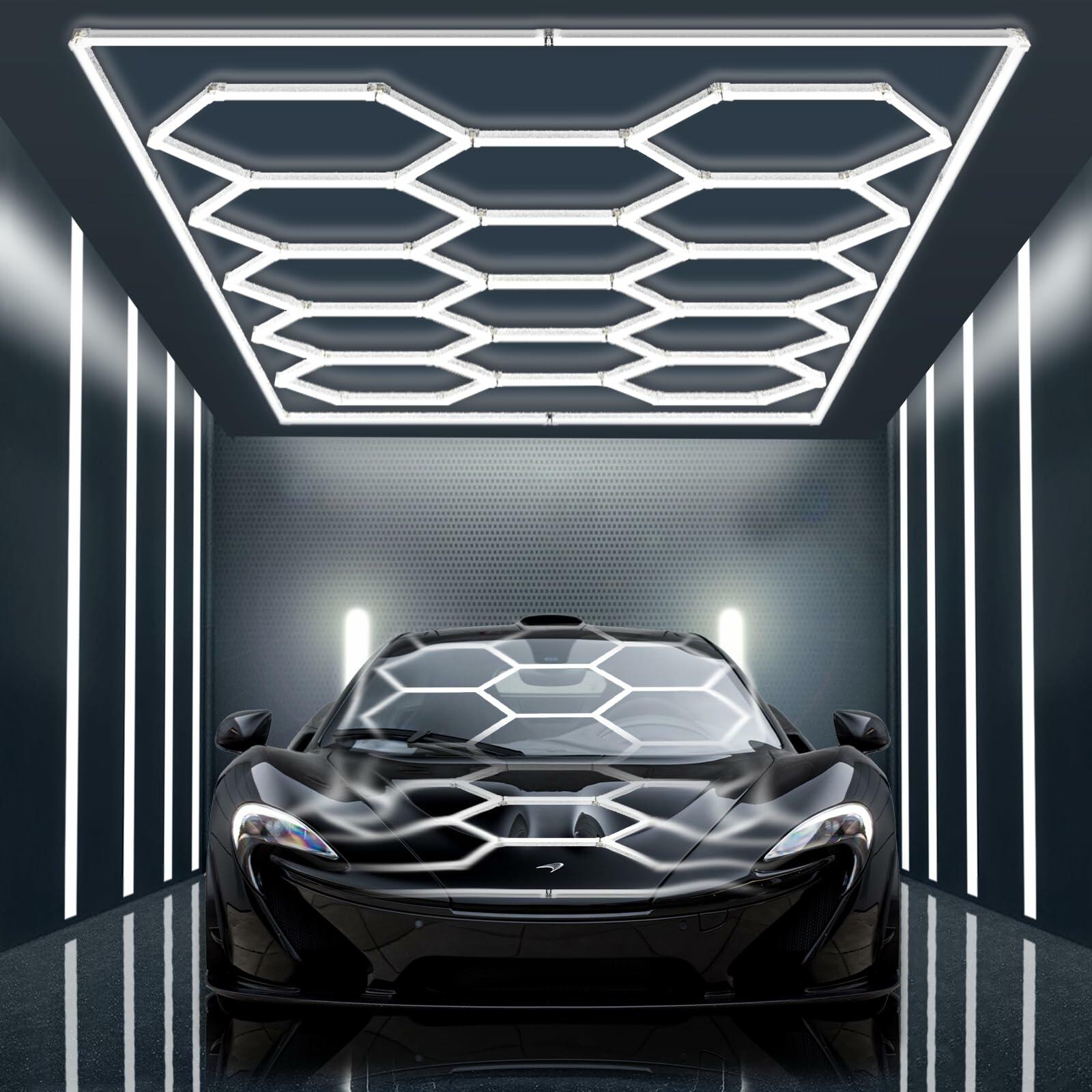 - 【Uniform Lighting for Large Spaces】:CYANCLIFF hex garage light Compared to the center light source of traditional lamps, the hexagonal lamps can shine the light evenly on the product, creating a stylish and atmospheric visual effect, which makes people feel as though they were stepping into a fantastical space of future technology. Perfect for Car Stores, Garages, Shopping Malls, Barber Stores, Exhibition Halls, Gyms, Rrt Salons, Game Halls and other scenes