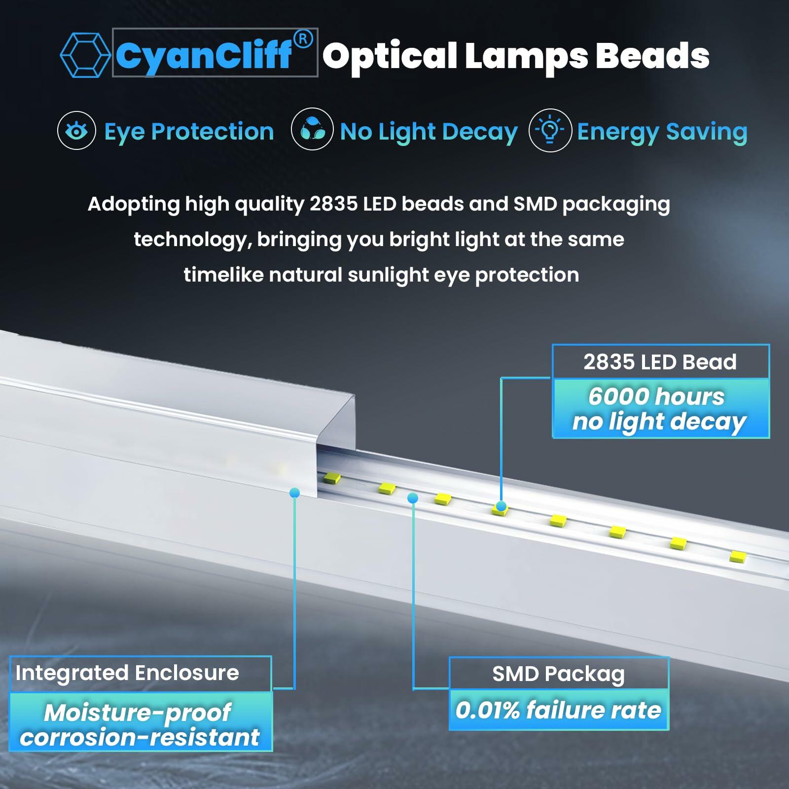 - 【ONE-Person Installation, TWO Methods】: CYANCLIFF garage light is designed for user convenience, offering TWO installation options with a detailed instruction manual.①For flat ceilings, simply follow the manual to connect and secure it with screws.②For framed ceilings, you can use zip ties for mounting.(Screws and zip ties are included, and the lightweight design allows for easy installation by ONE person.)