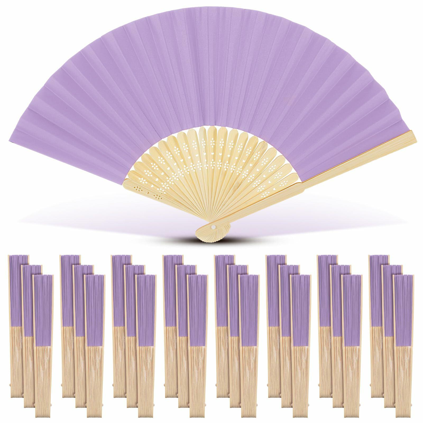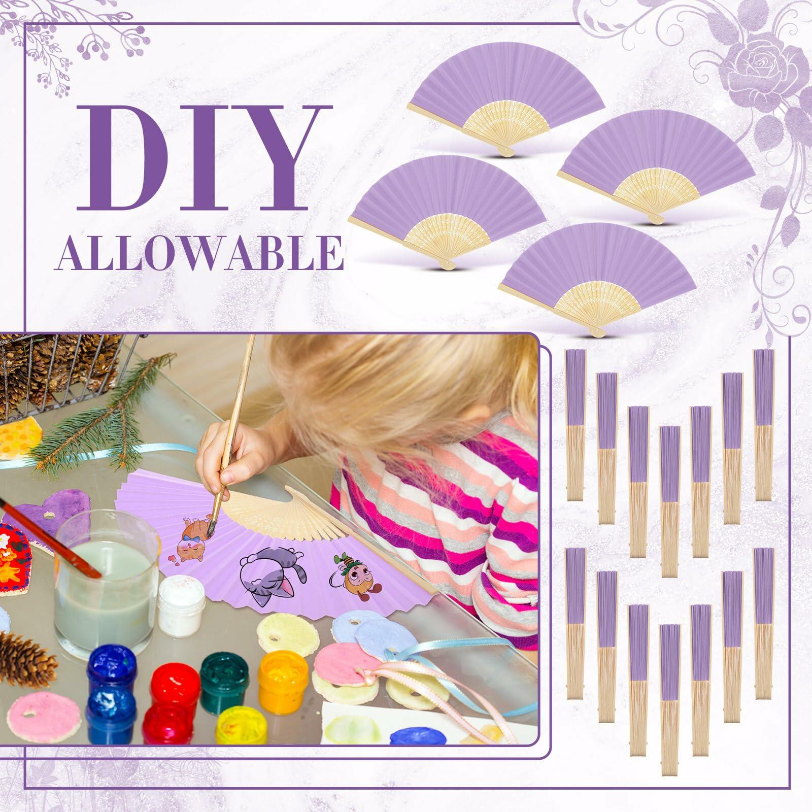 Yinkin 24 Pack Folding Fans Bamboo Handheld Folded Craft Hand Japanese Chinese Fans for Weddings Bridal Dancing Church DIY Decoration Women Kids Gift Party Favors (Light Purple)