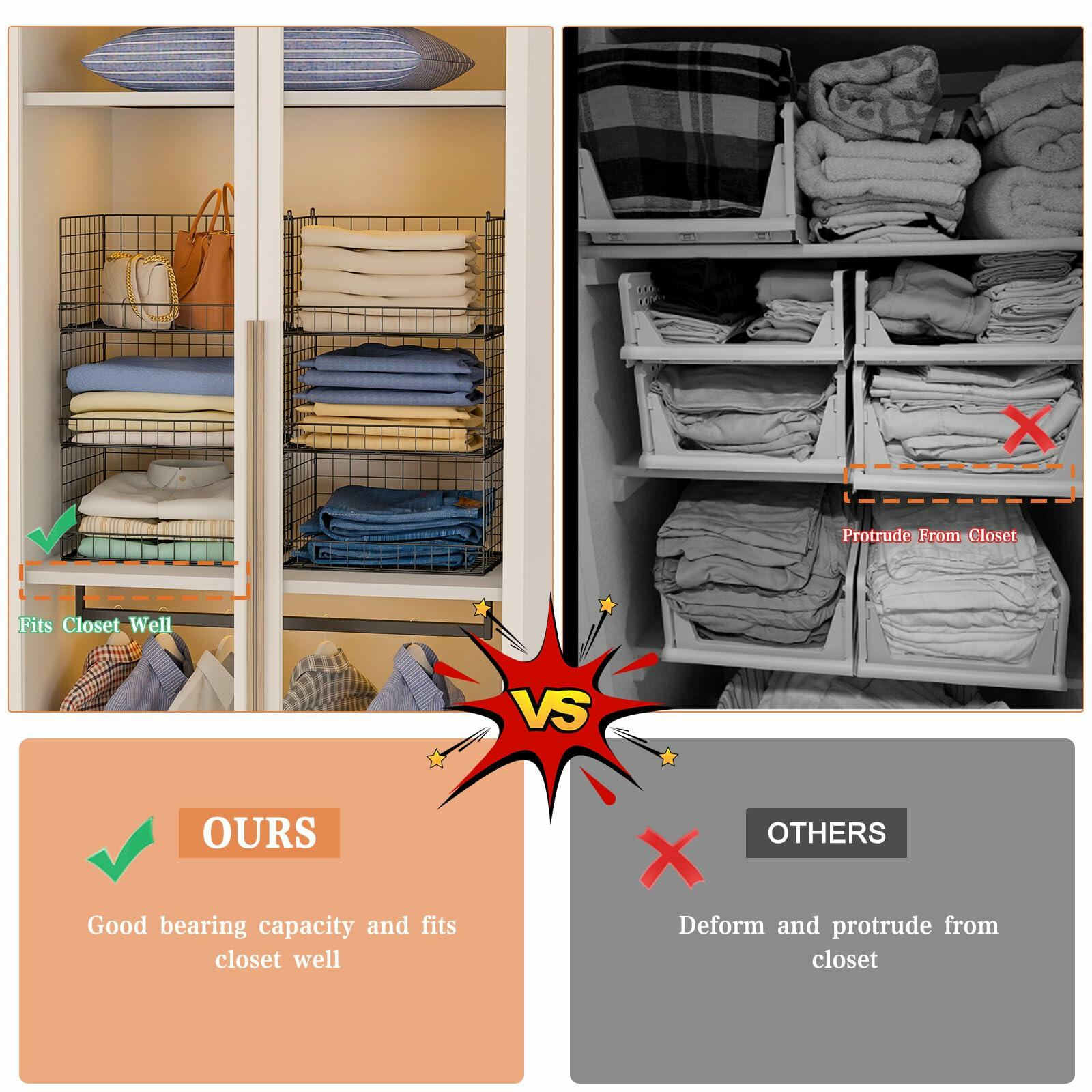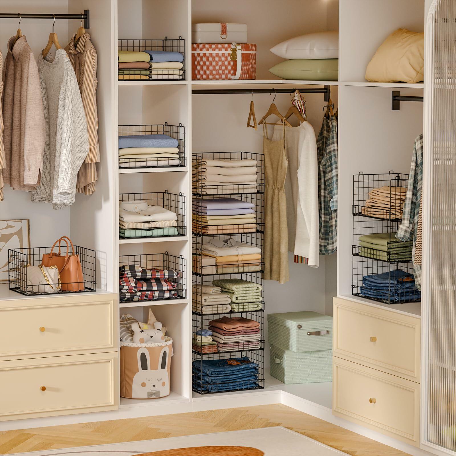- Sturdy Iron Mesh】Made of premium iron mesh,these closet storage bins are sturdy,durable,breathable,visible,no smell and washable.Would not bend or damage like plastic or cloth storage baskets. You can count on it is strong enough and has a good craft.