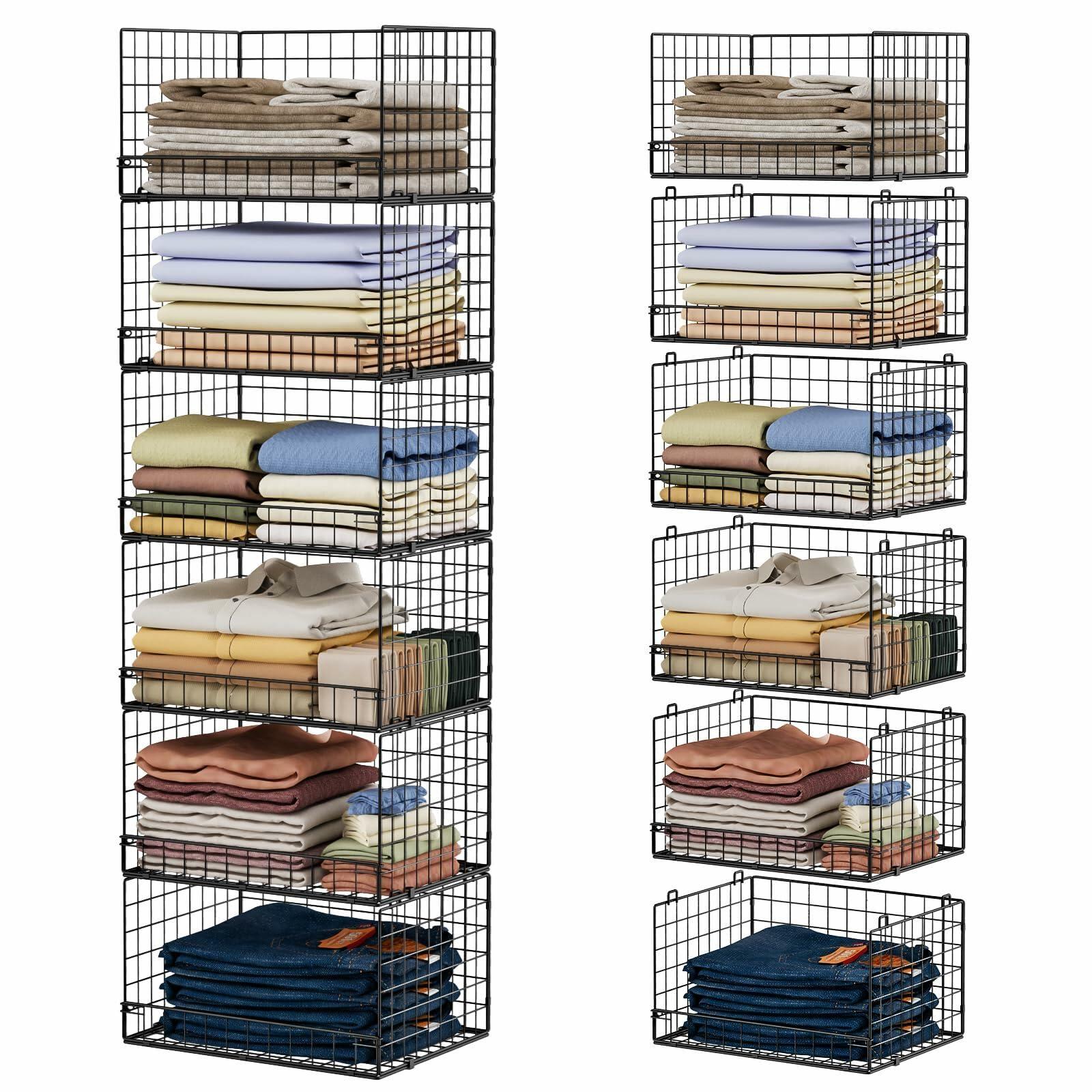 Yociyoga 6-Tier Stackable Closet Organizers and Storage Shelves, Closet Shelf Organizer Basket Bins, Foldable Sweater Storage for Clothes Organizer System, Black(Patent Pending)